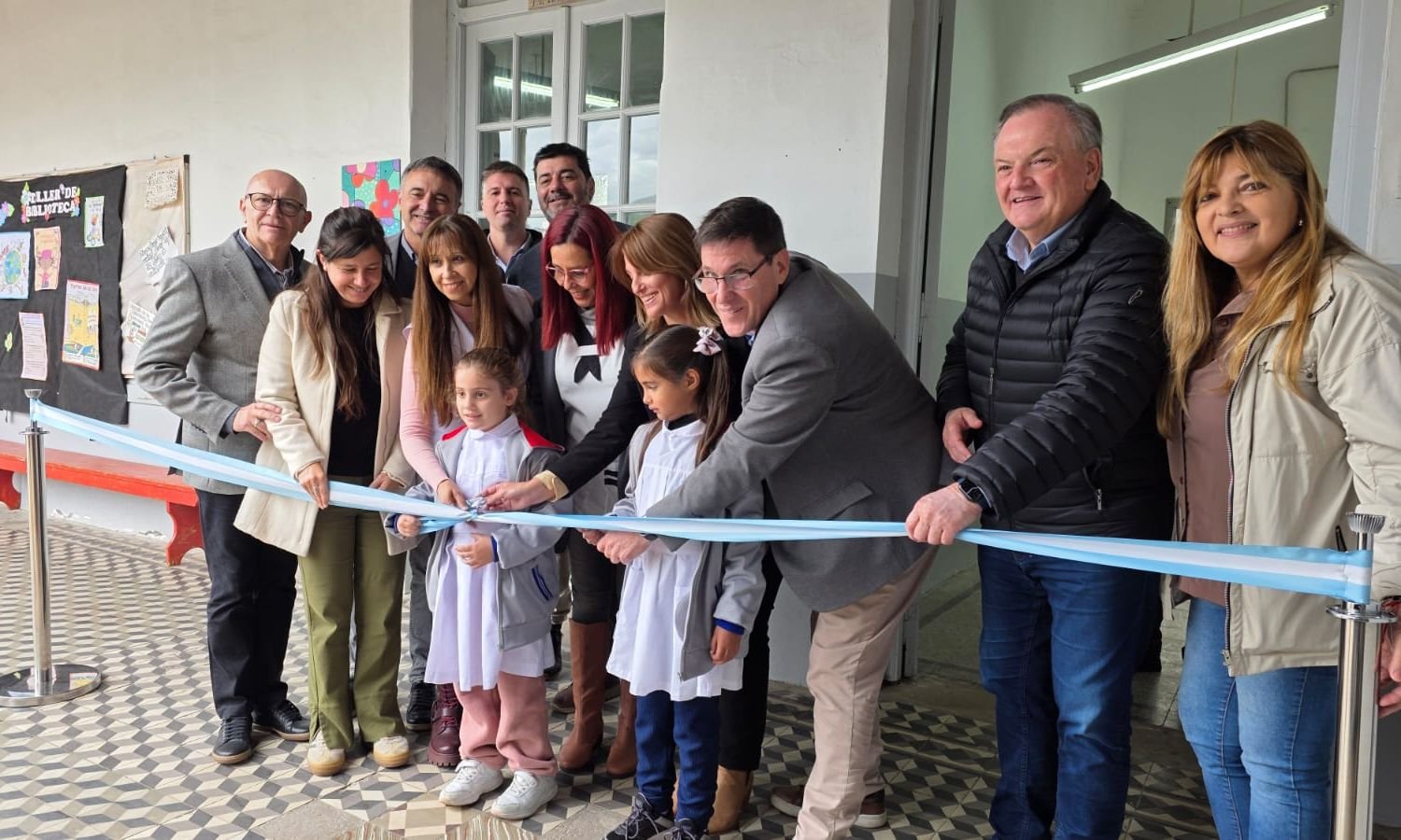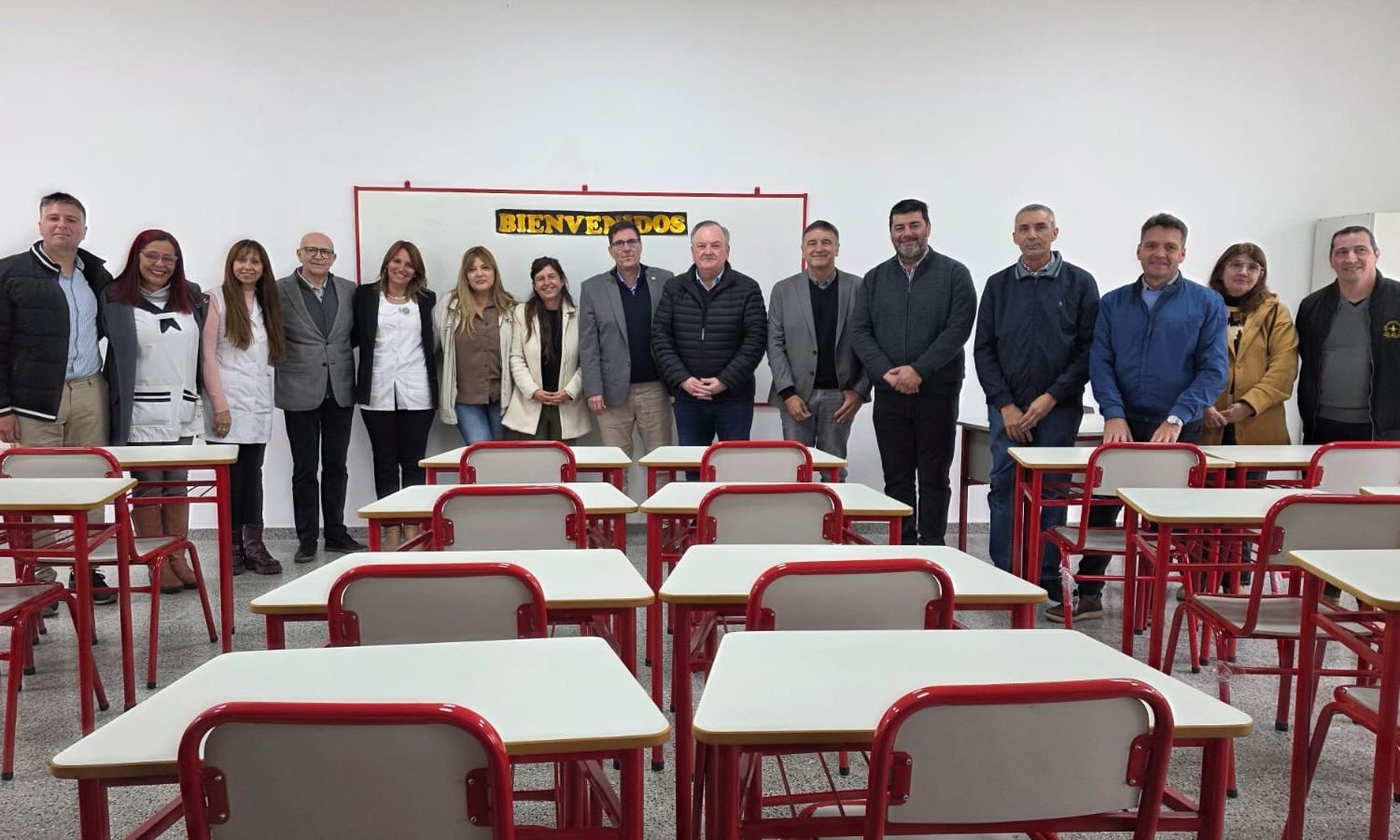 Seguidamente, la comitiva se trasladó a la Escuela N° 409 “Manuel Belgrano”, donde se llevó a cabo la inauguración de una nueva aula en el marco del programa “Mil Aulas”, ejecutada mediante licitación con una inversión de $128.497.264,26.