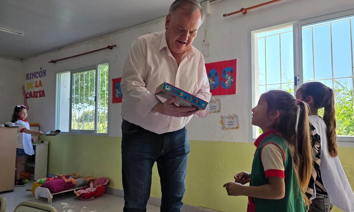 En el establecimiento educativo, las autoridades fueron recibidas por la directora Vinina Prieto y las docentes María del Rosario Gretter y Melina Rocha, junto a la presidenta comunal Lidia Nievas. En ese marco, se realizó la entrega de un aporte destinado al nivel inicial de la escuela y de un aire acondicionado split de 4.500 frigorías, solicitado por la comunidad educativa para mejorar las condiciones de enseñanza y aprendizaje.