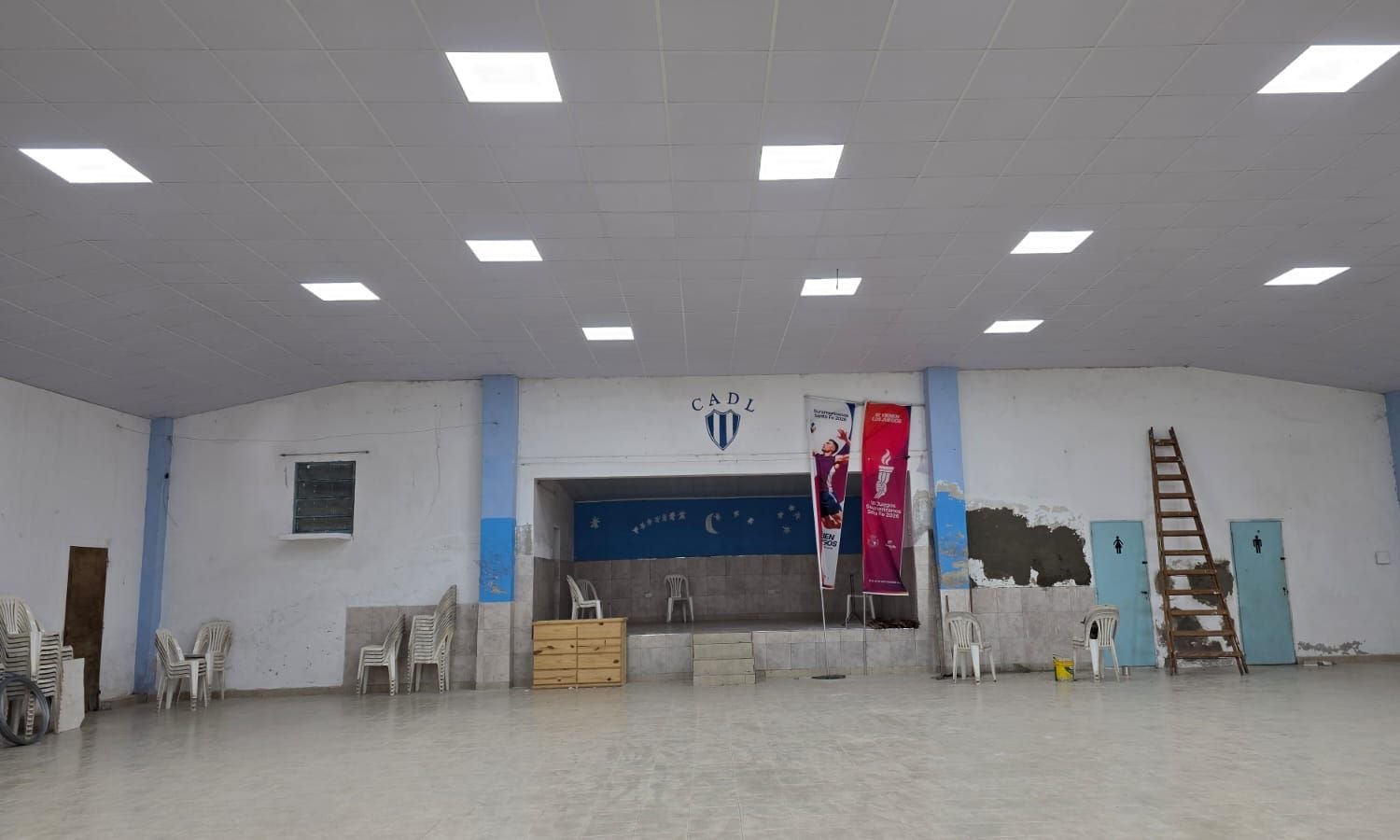 Posteriormente, las autoridades visitaron la institución deportiva, donde recorrieron las obras que se encuentran en ejecución. Allí ya se concretó el recambio total del techo, obra realizada con fondos aportados por el senador y el diputado, y la ejecución del cielorraso e instalación eléctrica, financiadas a través del programa provincial “Alentar”. En la etapa final, se prevén trabajos de pintura y se avanzará en las gestiones para la climatización integral del salón, con el objetivo de dotar al club de un espacio de primer nivel para toda la comunidad.