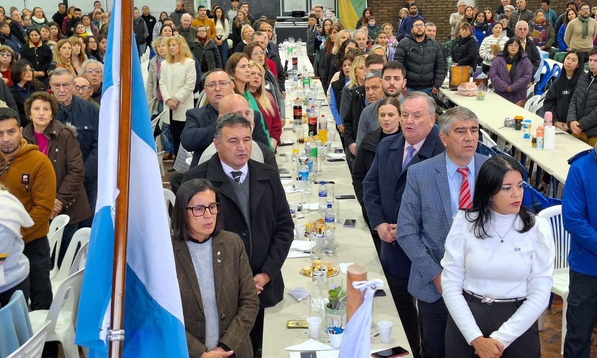 El ministro Bastía trasladó el saludo del Gobernador Maximiliano Pullaro y felicitó «al pueblo sanguillermino por escribir la historia grande de nuestra invencible Provincia de Santa Fe”.