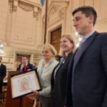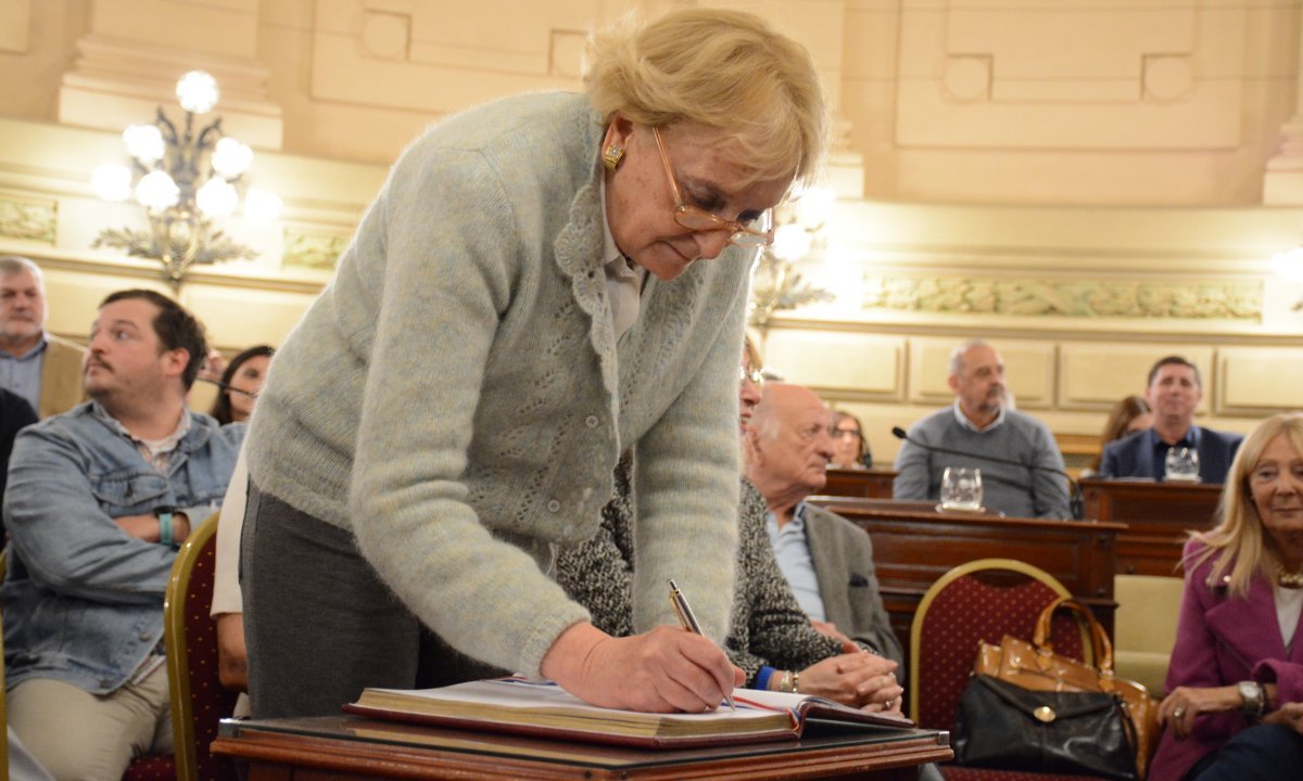 La homenajeada recibió un diploma por la distinción de la que fue protagonista y diversos presentes institucionales y firmó el Libro de Honor del Senado, donde quedará el testimonio si visita a la Cámara Alta.