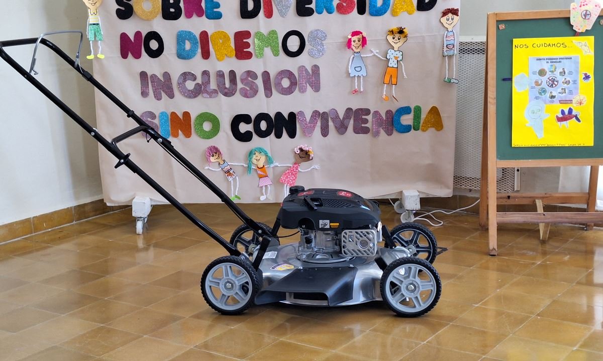 En la Escuela de Educación Especial N° 2029 «Héctor Corvi» se hizo entrega de una cortadora de césped a explosión recibida por la directora Marisa Bonafede y la vicedirectora Mariana Volken.