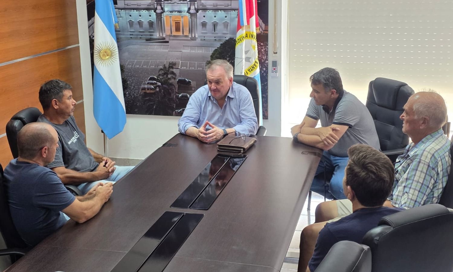 En primer término, el senador Felipe Michlig y el diputado Marcelo González se reunieron con integrantes de la comisión del Club Caza y Pesca, encabezada por su presidente Ariel Taramelli. Durante el encuentro dialogaron sobre el proyecto integral de la Laguna La Verde, abordando el estado de avance de la iniciativa y la intención del club de formar parte activa del mismo junto al Gobierno Provincial. Desde la institución remarcaron la importancia de este proyecto, al considerar que será clave para potenciar el desarrollo turístico, deportivo y ambiental de la laguna.