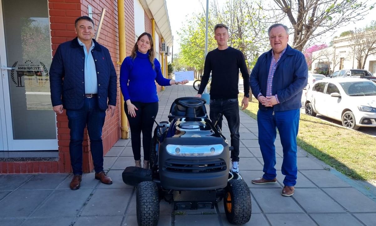 - Club San Lorenzo de Ambrosetti, para ayudar a cubrir parte de la inversión de la compra de un tractorcito -Poulan Pro-para cortar el césped del campo de juego, recibido por el Pte. del CASLA, Gastón Michlig.