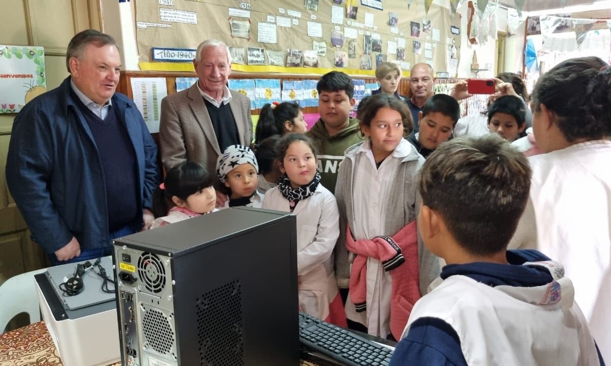 Visita a la Escuela N° 6307 «Mariano Moreno» donde fueron recibidos por su Directora, Sra. Claudia Abrate, Personal Docente y Alumnos (donde asisten diariamente 50 alumnos del nivel inicial y 1°). Allí entregaron una computadora y una Impresora HP, al momento que la directora destacó “la importancia que tiene para nuestra pequeña escuela este equipamiento informático).