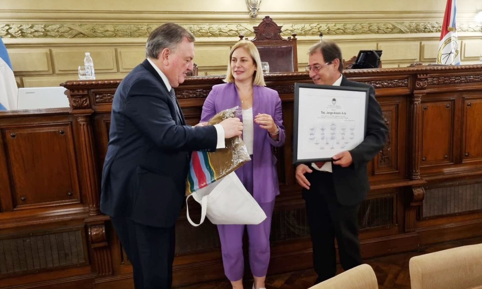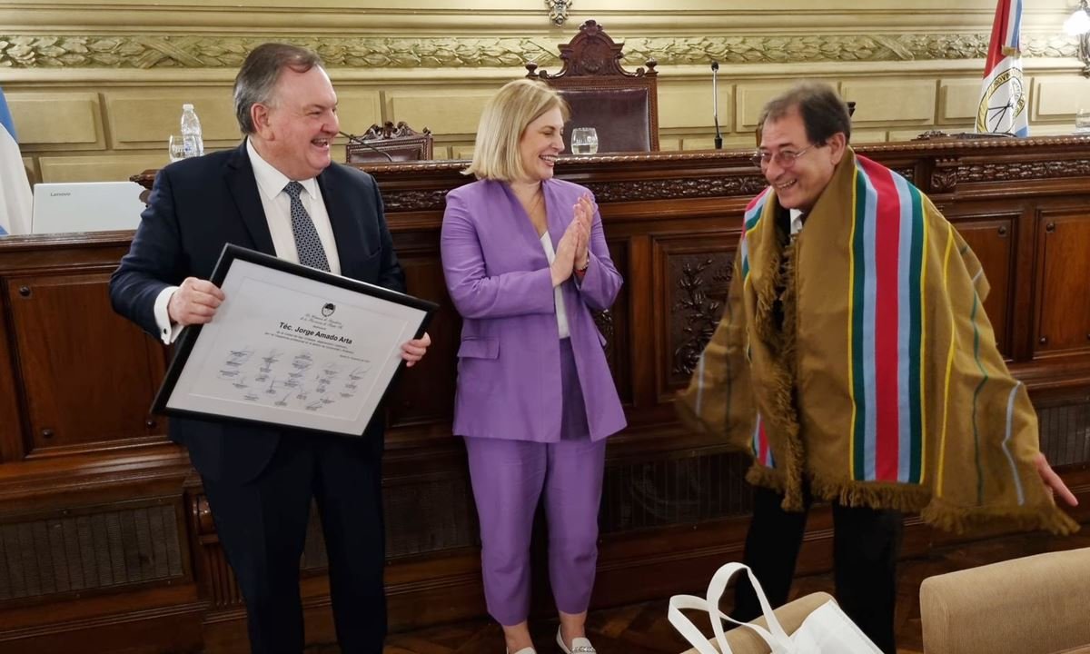 «Es un honor que este cuerpo pueda homenajear a este gran profesional a su esposa e hijos que lo acompañan por el gran aporte que hizo a lo largo de tantos años en materia de ceremonial y protocolo, asesorando y promoviendo ́creaciones de banderas de localidades, departamentos, y demás instituciones, es un orgullo para nosotros tener en nuestro territorio a personas como Jorge Arta».