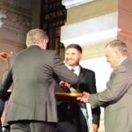 En la ocasión también se vivió un significativo momento cuando Felipe Michlig y Carlos Fascendini (ambos Ptes. de la UCR provincial -actual y anterior-) rindieron un homenaje por los 40 años de Democracia. Por tal motivo entregaron a Maxi Pullaro un bastón de mando de “diseño austero y republicano, torneado con una madera que fuera instrumento de labranza con el que se trabajó la tierra santafesina”.