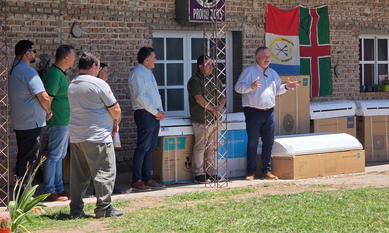 En el patio del establecimiento se desarrolló un emotivo acto con la presencia de alumnos, docentes y autoridades, durante el cual se entregaron cinco equipos de aire acondicionado —cuatro de 8.000 y uno de 15.000 frigorías—. El de mayor capacidad será destinado al comedor escolar, mientras que los demás serán distribuidos entre distintas aulas y el albergue estudiantil.