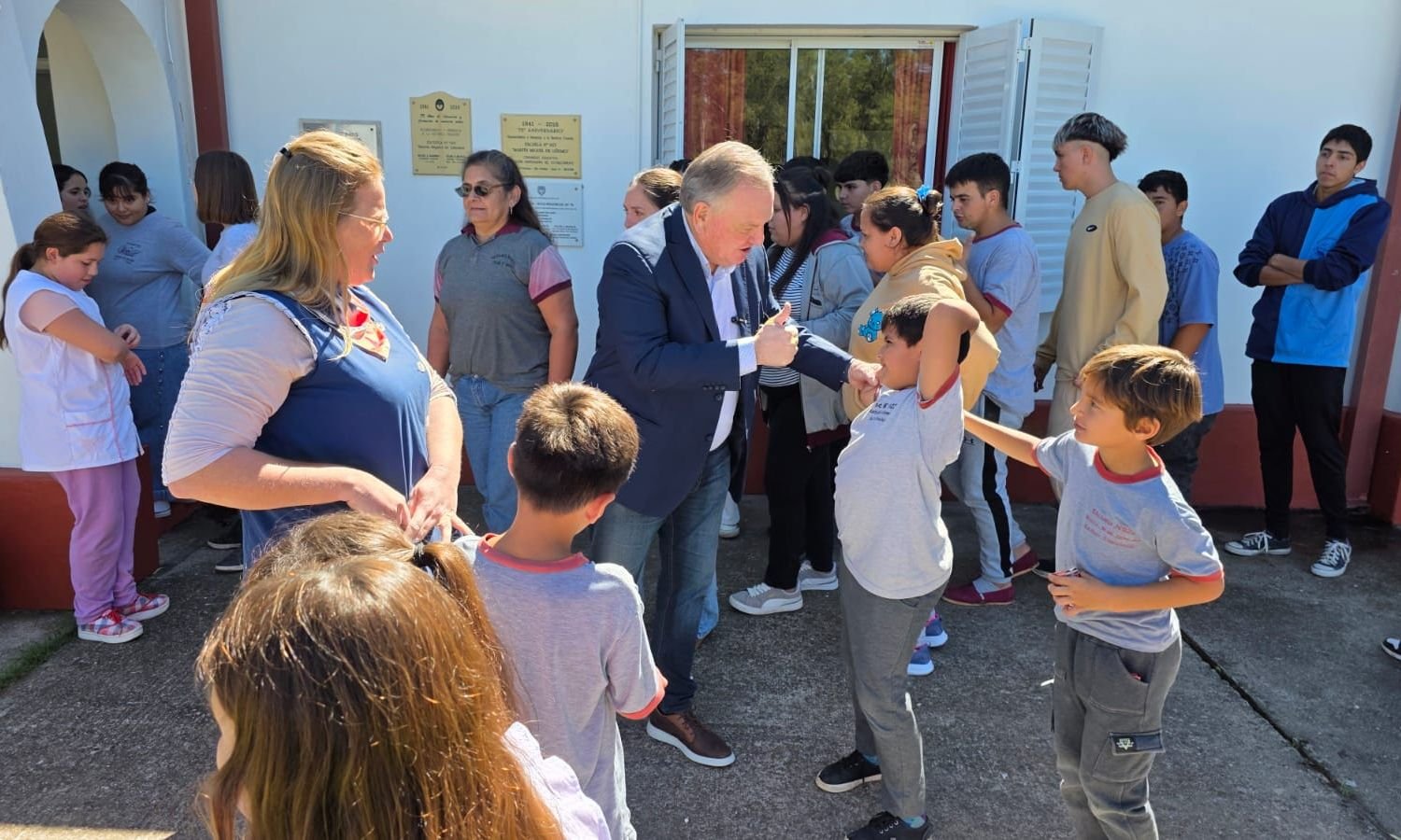 Junto a alumnos de los tres niveles educativos, se llevó a cabo un breve acto en el exterior del establecimiento, en cuyo marco se concretó la entrega de un aporte destinado a la compra de un equipo de sonido y un micrófono.