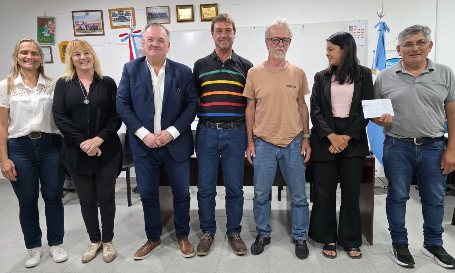 • –Asociación de Bomberos Voluntarios: el presidente Sergio Fauda y el tesorero Marcelo Daniel González recibieron un aporte destinado a la compra de aberturas para la obra edilicia que se encuentra en ejecución.