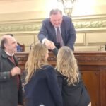 Antes del comienzo de la sesión el Pte. Provisional Felipe Michlig recibió en el recinto a la Diputada Silvana Di Stefano (impulsora de la norma) y al diputado Marcelo González, quienes acompañaron a Silvia y Alejandro Trivisonno, padres de Antonella Trivisonno, una niña oriunda de Rosario que en 1999 -con 6 años de edad- falleció producto de un siniestro vial.