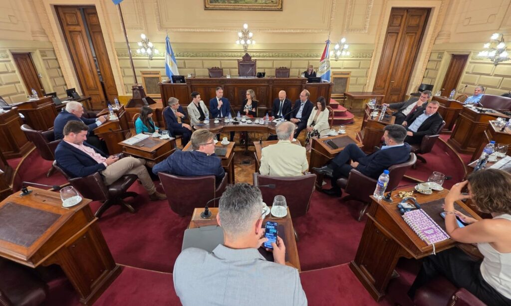Este jueves por la mañana en el recinto de la Cámara de Senadores de la Provincia de Santa Fe se llevó a cabo una reunión encabezada por el Presidente Provisional Felipe Michlig con el fin de avanzar en el tratamiento del Mensaje N°32 del Poder Ejecutivo, por el cual solicita autorización para contratar un empréstito con la Agencia Francesa de Desarrollo hasta la suma de 50 millones de euros, para el financiamiento del Proyecto Mejora Energética para Edificios Sostenibles e Inclusivos.