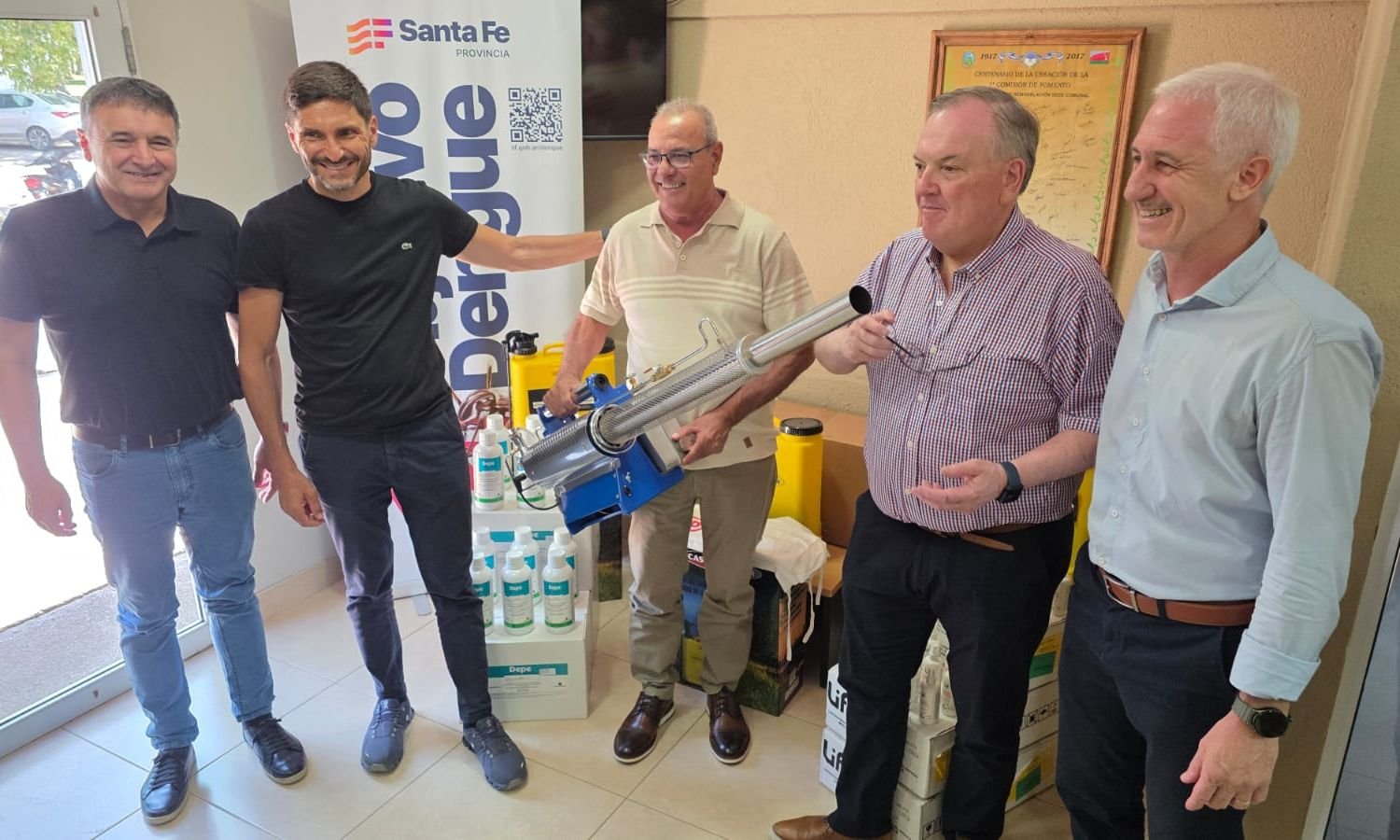 Durante el acto desarrollado en la sede comunal, las autoridades provinciales realizaron la entrega de materiales e insumos correspondientes al Programa “Objetivo Dengue”, reforzando las acciones de prevención y control de la enfermedad en la localidad, y manifestaron su acompañamiento a la nueva gestión comunal.